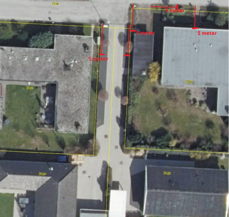 For koteletgrunde regnes vejskel fra koteletbenets start ved stamvejen, der hvor skraldebilen holder normalt.