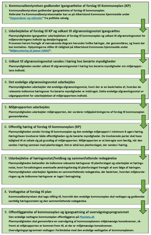 Plan- og miljøvurderingsprocessen er skitseret i nedenstående procesdiagram, og Albertslund Kommunes forvaltning har udarbejdet ”Udkast til afgrænsningsnotat”: