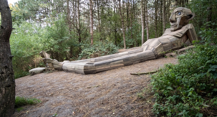 "Thomas På Bjerget" er navnet på én af Thomas Dambos seks kæmpeskulpturer, som er opført i forbindelse med Vestegnens Kulturuge 2016. De symboliserer fællesskab og sammenhæng på Vestegnen og er ovenikøbet lavet af genbrugstræ. "Thomas På Bjerget" er at finde på en bjergskråning i Kongsholmsparken. Så tag en tur ud i de fri og se en kæmpe helt tæt på.