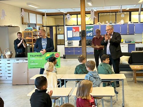 I september deltog mere end 95.000 skoleelever fra hele landet i årets store cykelkampagne, Alle Børn Cykler, arrangeret af Cyklistforbundet. Kampagnen, som hvert år skaber cykelglæde på tværs af skoler. I Albertslund har hele 746 elever været med på tværs af de fire folkeskoler og Lilleskolen. Samlet set blev det til 4610 cykeldage i de to uger, kampagnen løb. Godt cyklet. Torsdag den 9. oktober blev 0.B på Egelundskolen i Albertslund overrasket af bl.a. borgmester Steen Christiansen og direktør i Cyklistforbundet, Kenneth Øhrberg Krag, i klassen med nyheden om, at de har vundet hovedpræmien: cykler til hele klassen og deres lærer.