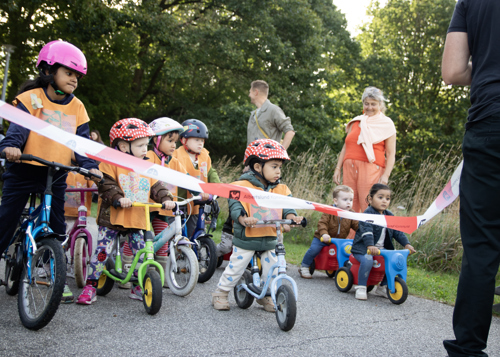 Fredag formiddag var der fuld fart på de yngste cyklister i Birkelundparken, da Albertslund Kommune traditionen tro afholdt cykelløbet ’De små Cykler’.
