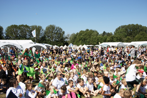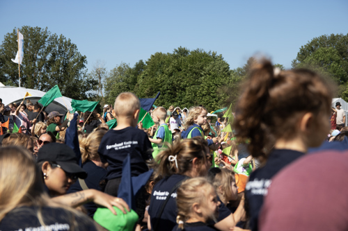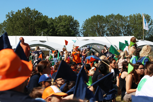 Tirsdag den 13. juni kl. 10.30 udspillede den store åbningsceremoni sig, hvor alle børn og voksne var samlet ved hovedscenen og bl.a. sang albertslundsangen og lejrene flagede med deres særlige farve; rød, blå, gul, hvid, orange grøn, turkise – det var som altid et fantastisk billede på det særlige fællesskab, som Børnefestugen er!