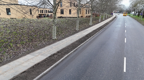 - Derudover er der blevet etableret en grøn rabat, som er beplantet og bidrager til et mere behageligt og grønt byrum i Albertslund, som bliver synligt senere, på den anden side af vinteren.